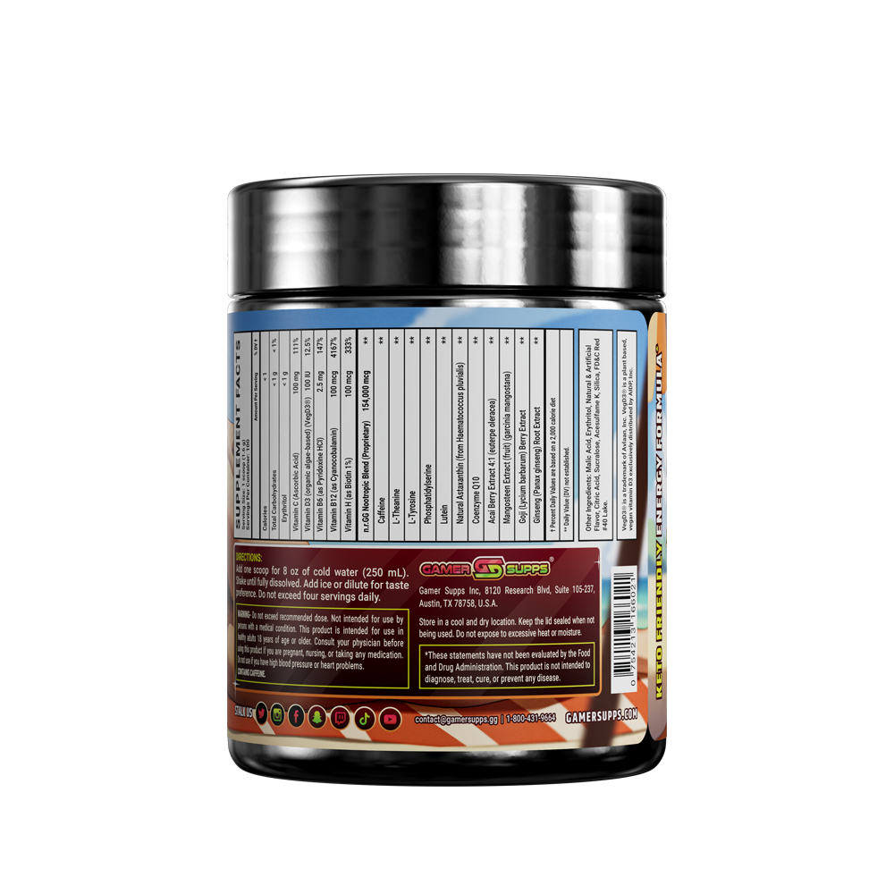GG is the ultimate energy and focus formula designed to Level Up Your Gaming. The highest quality ingredients make up an energy formula that mixes completely and provides a healthier and more cost effective energy drink.